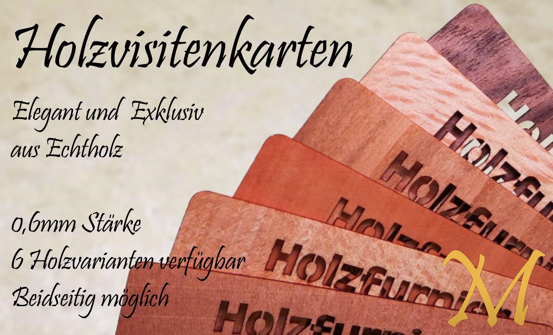 - Unsere Visitenkarten bestehen aus 100 % natürlichem Echtholzfurnier (0,5–0,6 mm stark) und sind bewusst als hochwertige Einweg-Visitenkarten konzipiert.
